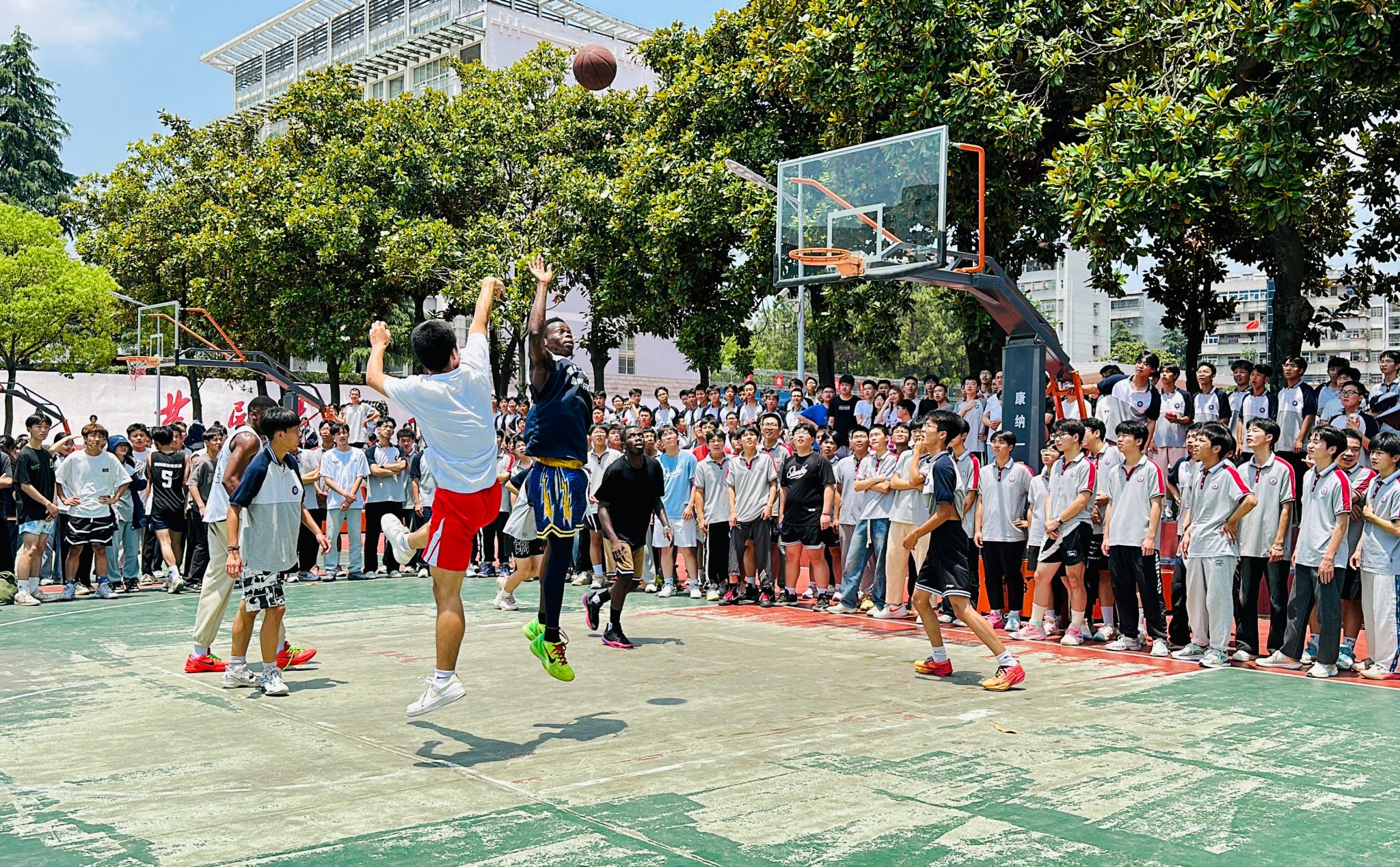 篮球队的4名国际学生代表,来自贝宁的BALOGOUN OLUWAFEMI ADEDIRAN ULRICH巴罗纳、来自马拉维的NAMAONA JOSEPH(忠飞)、来自莫桑比克MUTEMBAEDNSOM EDNILSONJACINTO(卢迪)与来自俄罗斯的MAKARENKO GEORGII(马可),与现场学生开展了一场别开生面的篮球互动课,在课程结束后,中外学生联袂给全校学生上演了一场精彩绝伦的表演赛,精彩的传球、漂亮的扣篮,无不将永不服输的体育精神展现的淋漓尽致!比赛现场人山人海,气氛热烈,这一刻,中外学生通过体育链接你我,沟通无界!