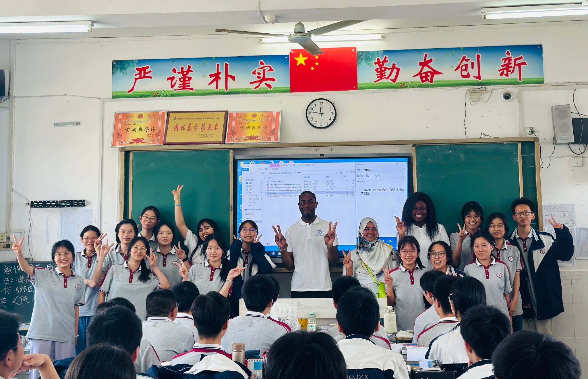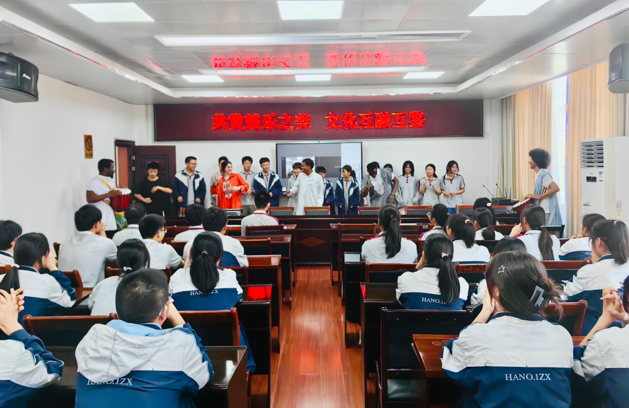 此次活动第一站为红安一中。在红安一中,15名国际学生分别分为音乐、文化互鉴与体育活动三个小组分别展开文化交流活动。
