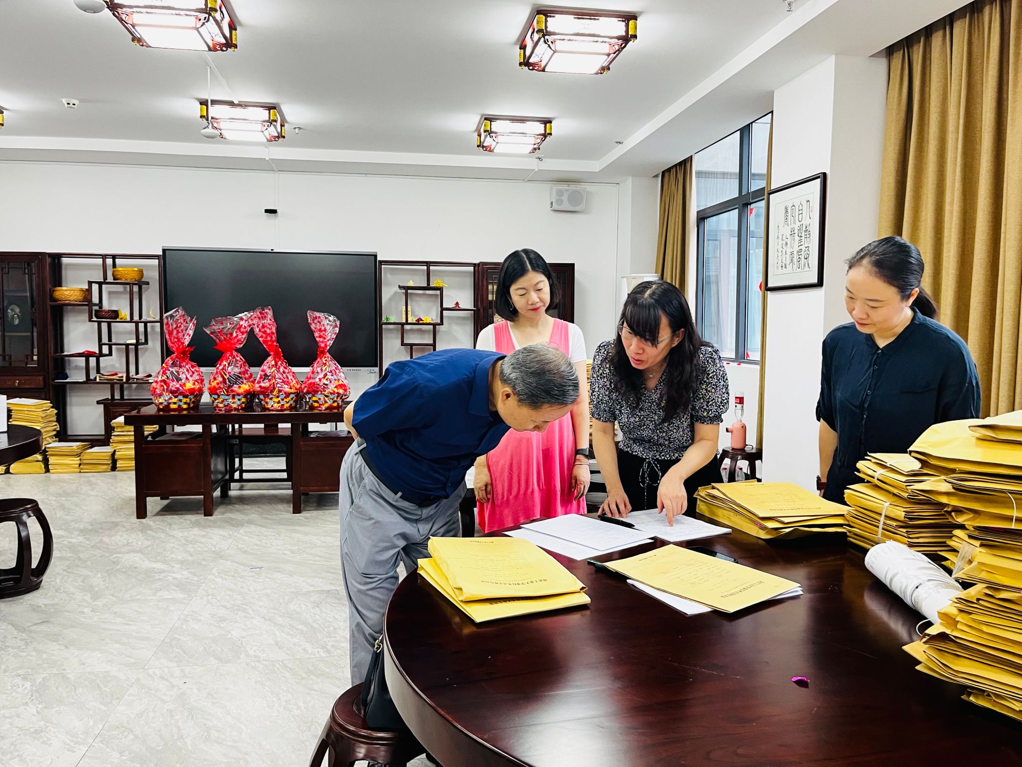 领导进行深入交谈。随后前往试卷督查现场,对试卷审核标准与教学督导进行沟通,并给予指导。他代表学校党政向暑期坚守岗位、紧锣密鼓备战来华留学质量认证的全体教职工表示感谢,并为各位老师送上防暑降温用品。